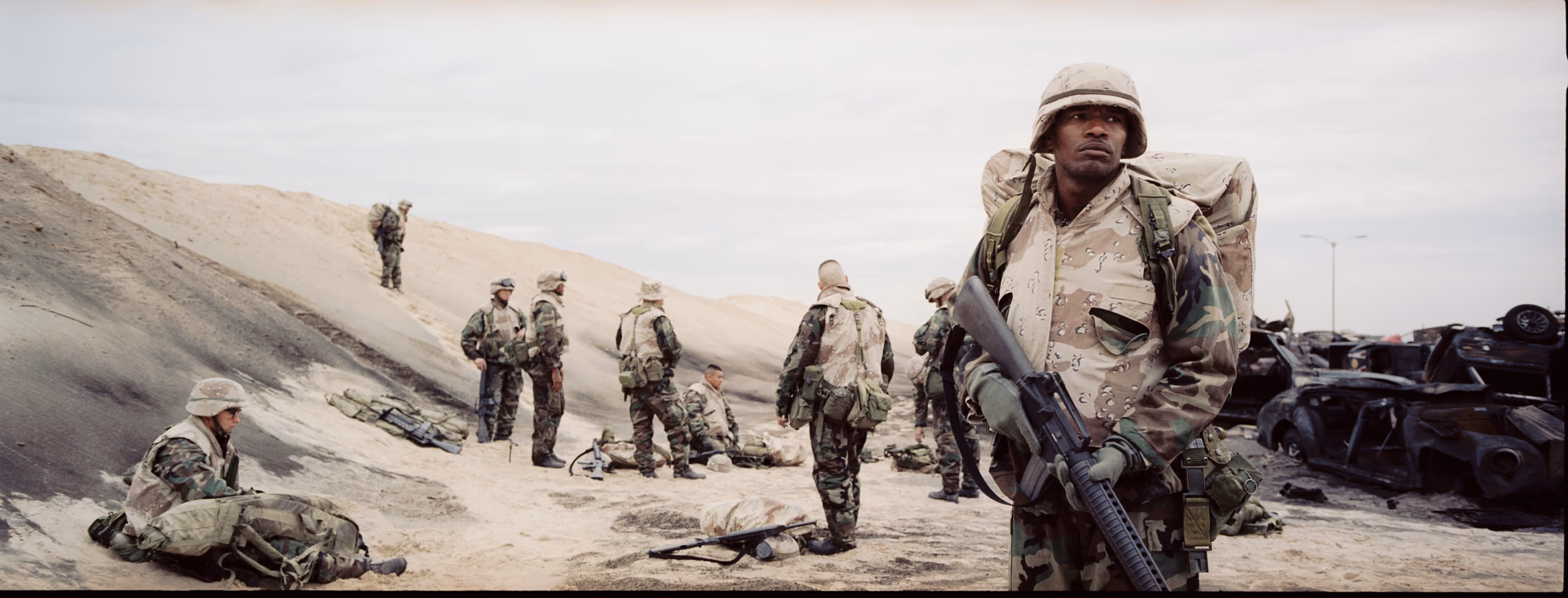 Jarhead (the self-imposed moniker of the Marines) follows Swoff (Jake Gyllenhaal), a third-generation enlistee, from a sobering stint in boot camp to active duty.
